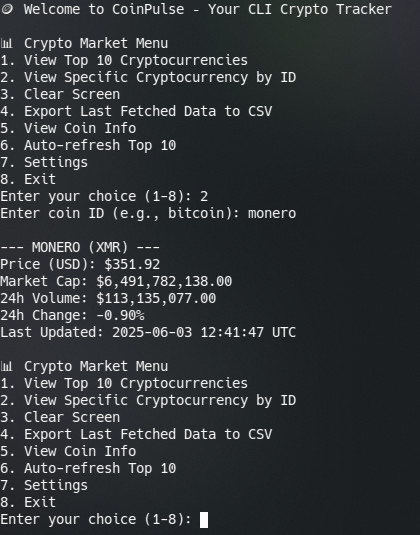 CoinPulse — Real-Time Cryptocurrency Tracker CLI (Python)