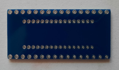 Raster of adapter: 2.54 mm (0.1 in), distance of hole rows 17.78 mm (0.7 in) = 7 breadboard holes