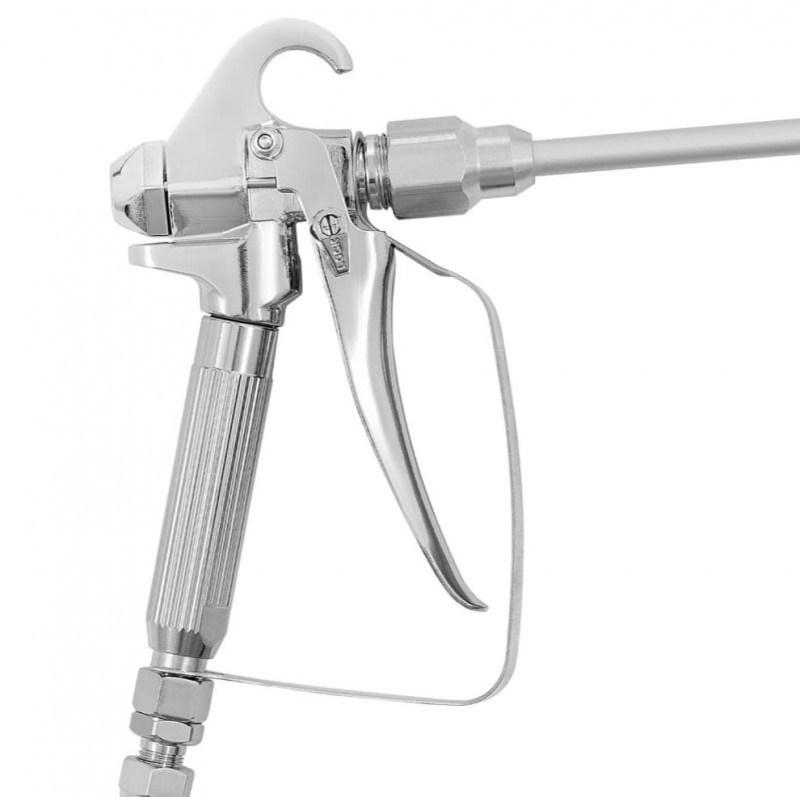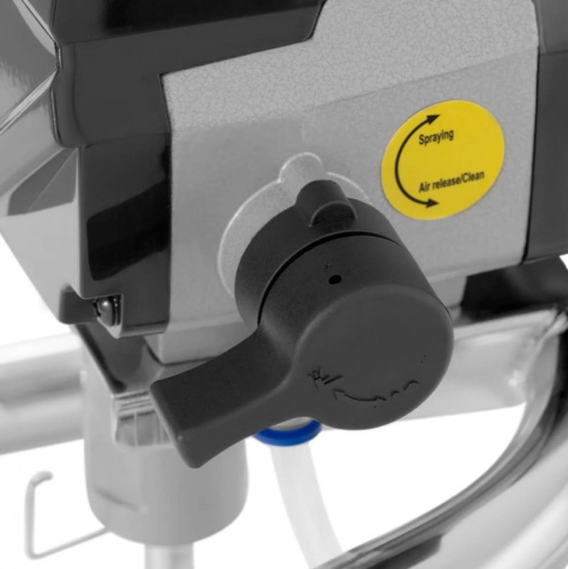 The durable device has a stable frame on which it stands firmly. You can easily apply the wall paint spray system as needed in no time. At the push of a button, you can ensure safe pressure relief. A trigger lock on the spray gun and the built-in nozzle guard provide additional safety.