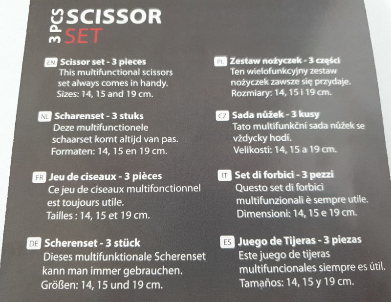Scissor Set 3 Pieces 14cm 15cm 19cm Stainless Steel