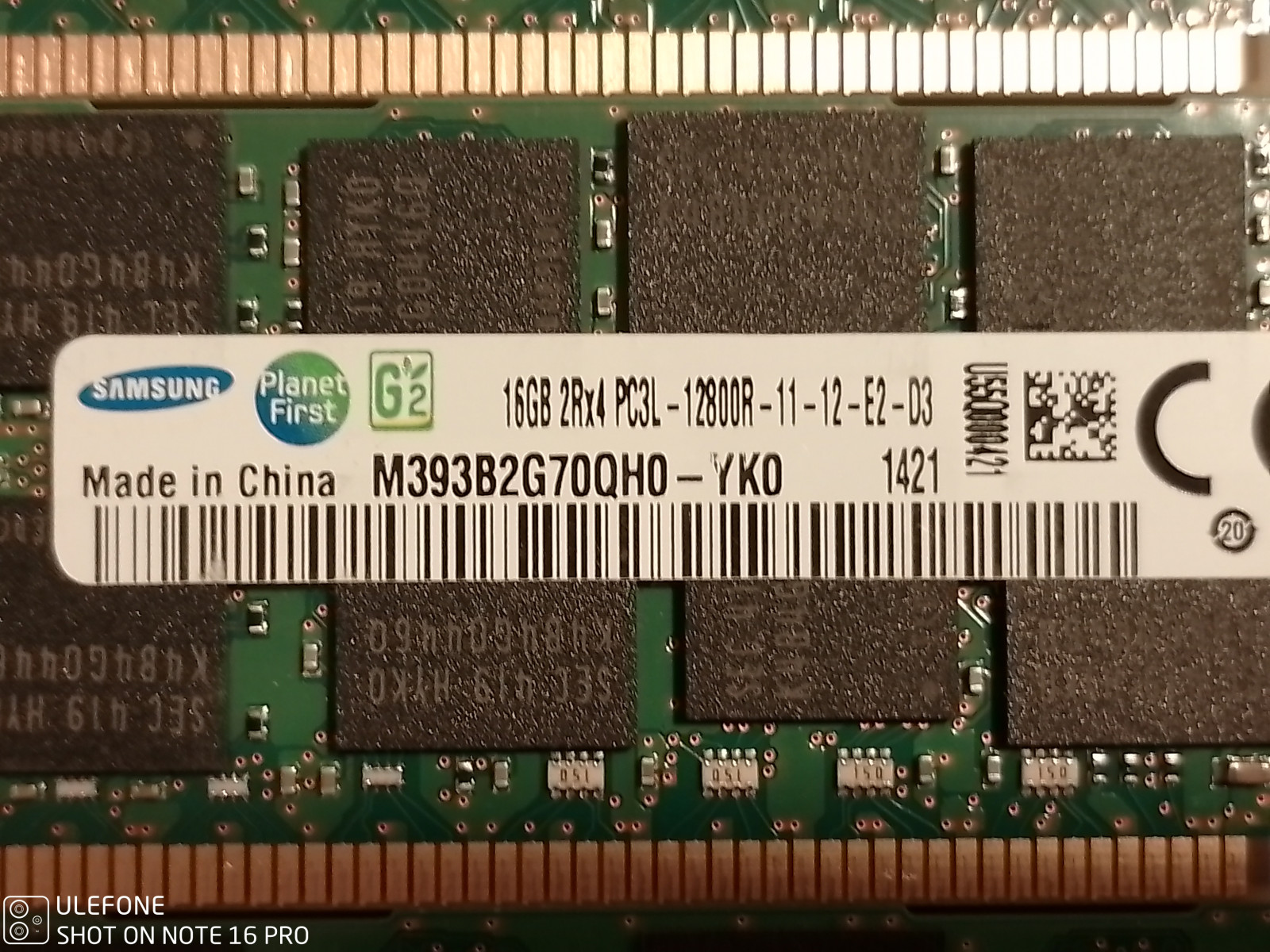 128 GB = 8x 16 GB DDR3 12800R PC3L 1600 Mhz Ram ECC REG Registered 2rx4