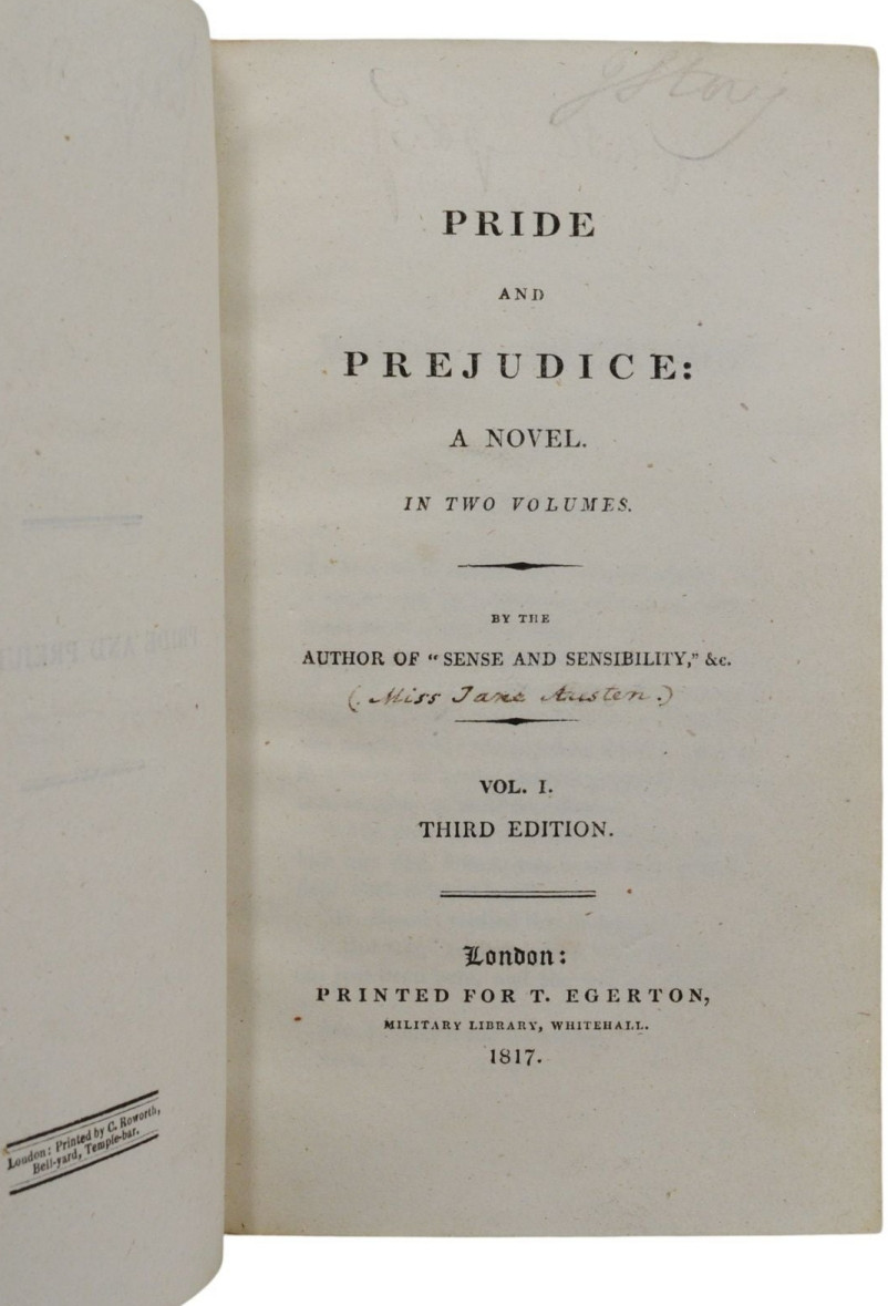 First published in 1813 in three volumes, the third edition is the first two-volume edition and the final edition to be published by the book's original publisher. An early edition of Austen's enduring classic and beloved work, published during the year of her death in 1817.