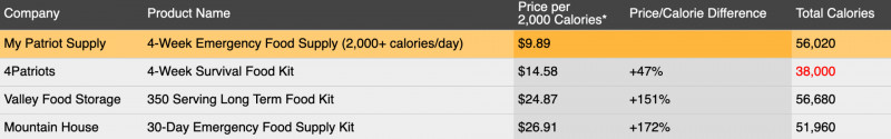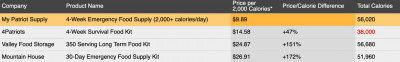 at the most reasonable prices possible. It's the calories that matter during emergency survival. Take a look and compare.
