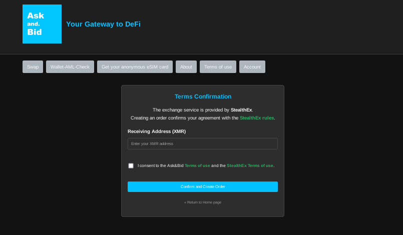 Tags: crypto-exchange-agrregator, swap, Privacy, Buy XMR, Sell XMR, XMR swap, No KYC, crypto exchange, Ask&Bid, Askand.bid