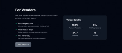 FOR VENDORS - Sell your products with escrow protection and reach privacy-conscious buyers
