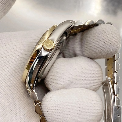 no slack on the bracelet. Timepiece has no scratches after the age. The dial and bezel are aftermarket.