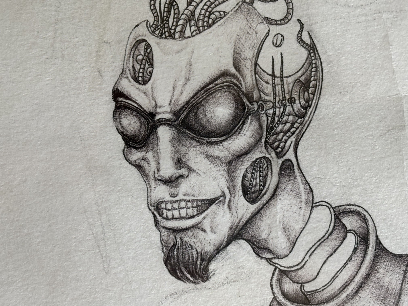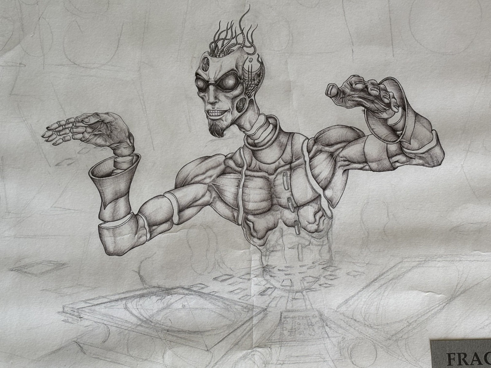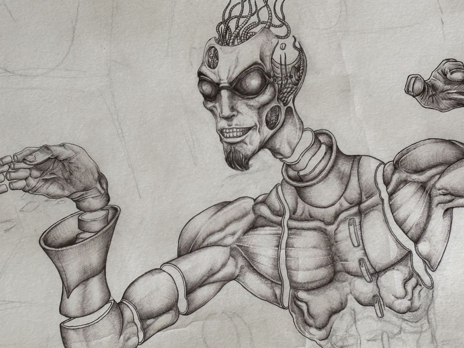 The vision of a hybrid being — part flesh, part machine, part unseen — imposed itself on the artist without filter.