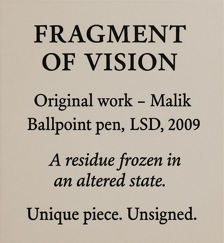 The drawing is intentionally unfinished. The comedown marked a sudden break in the creative flow, leaving the piece suspended in a liminal state: clarity or mental drift?