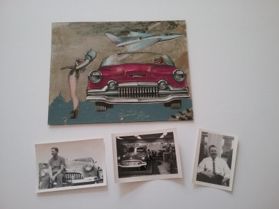 While the original black and white images portraying Samuel Shapiro in a mid-20th-century automotive design studio in Detroit, Michigan—where he was instrumental in constructing full-scale automobile prototypes—are not part of the sale, photocopies of these images will be provided to substantiate the painting's lineage and enhance its collectible value.