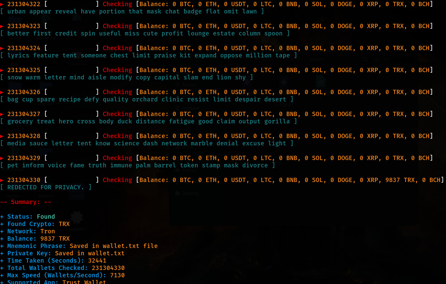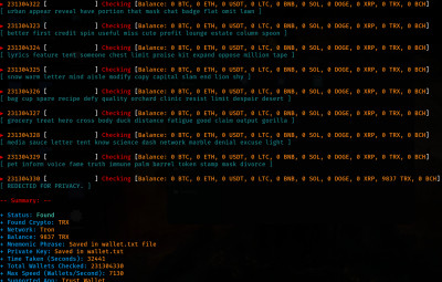All successful (winning) operations appends wallet details and access in output text file. You won't overlook anything.