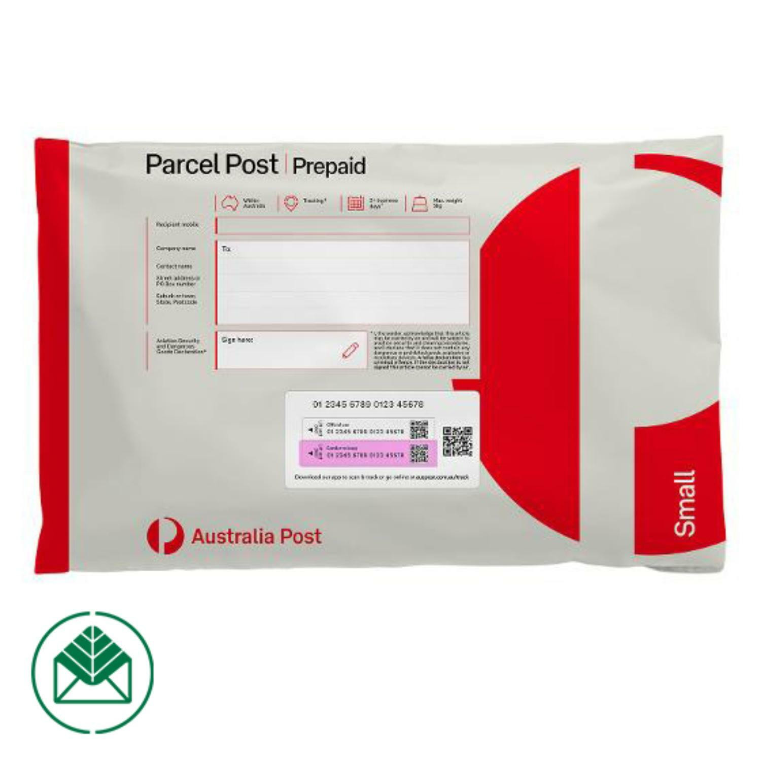 Small Parcel Post Satchels measure 355 x 255mm. Satchel has a 5kg weight limit. Parcel post ensures that parcels are delivered in two or more business days in Australia.