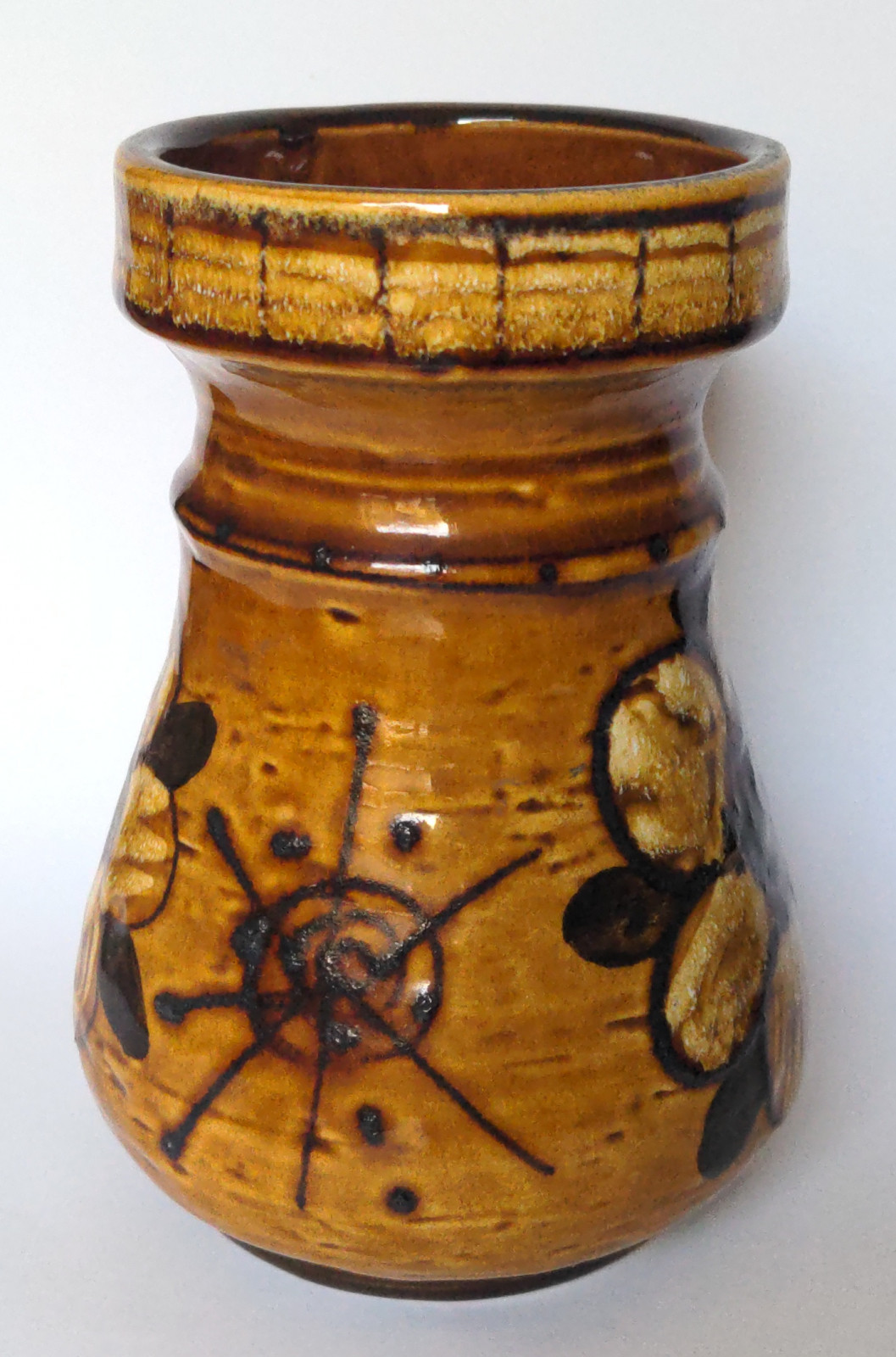 Brown flower-themed ceramic vase | Very good condition