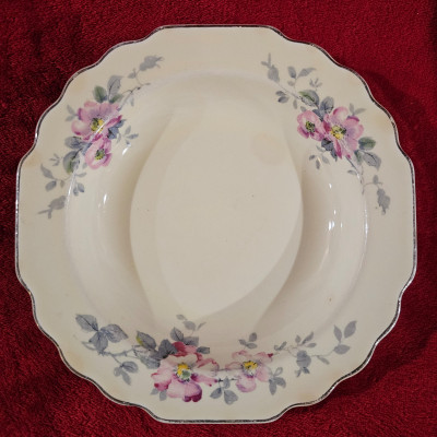 Beautiful platinum trimmed plate, made in the late 1930's to early 1940's. Lightly used, but good display condition.