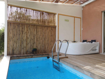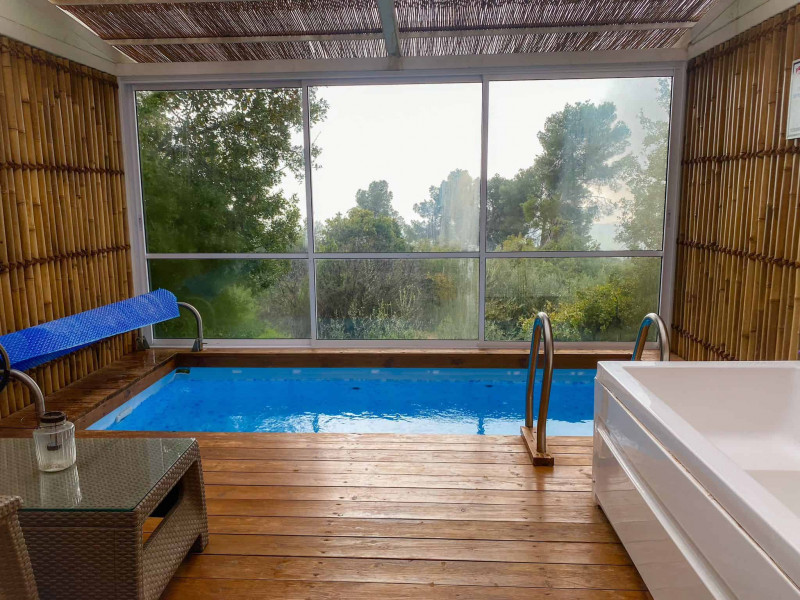 On the beautiful balcony with panoramic windows, you will find a luxurious jacuzzi and a heated pool with a beautiful view of the Galilean mountains and natural pine grove.