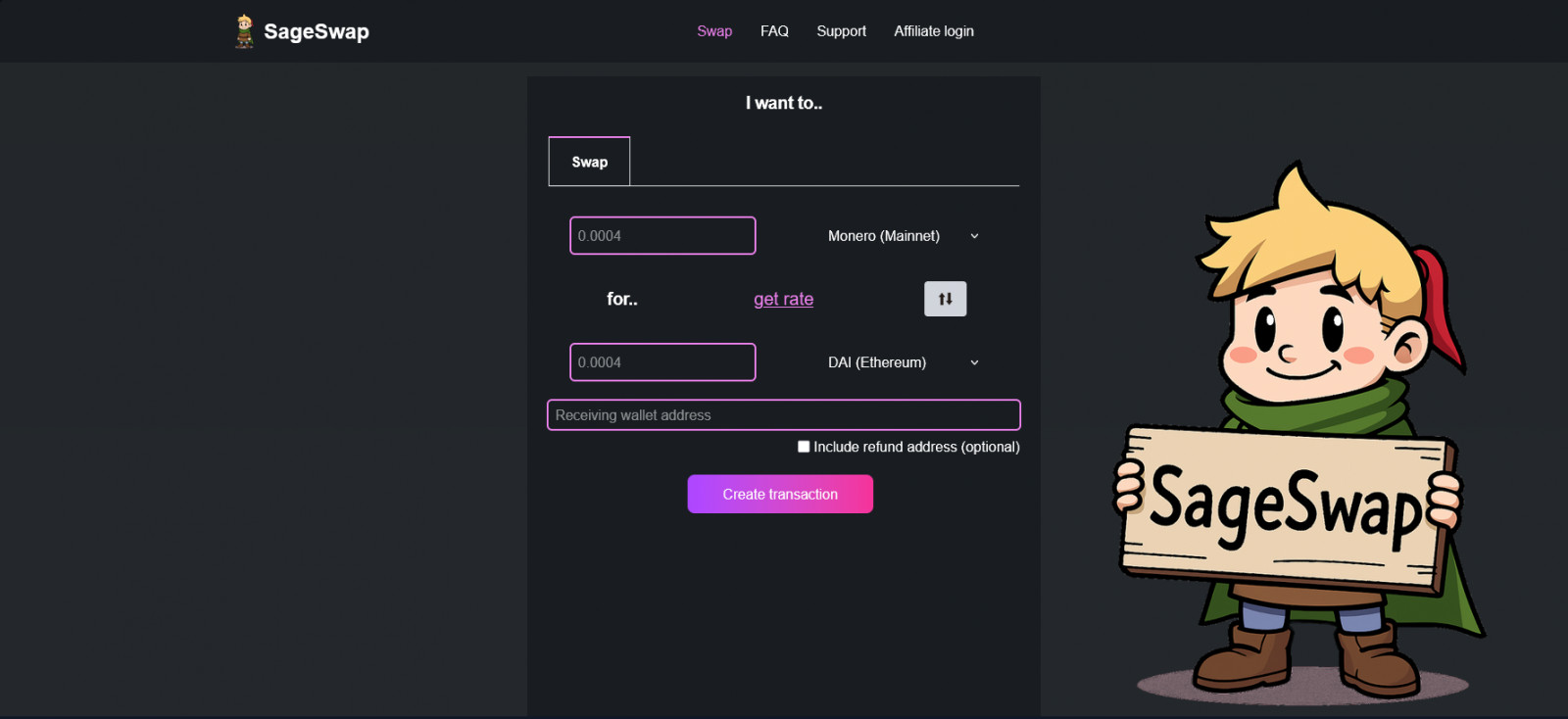 SageSwap.io - The Privacy-First, KYC-free, NO-JS, Swap Service!