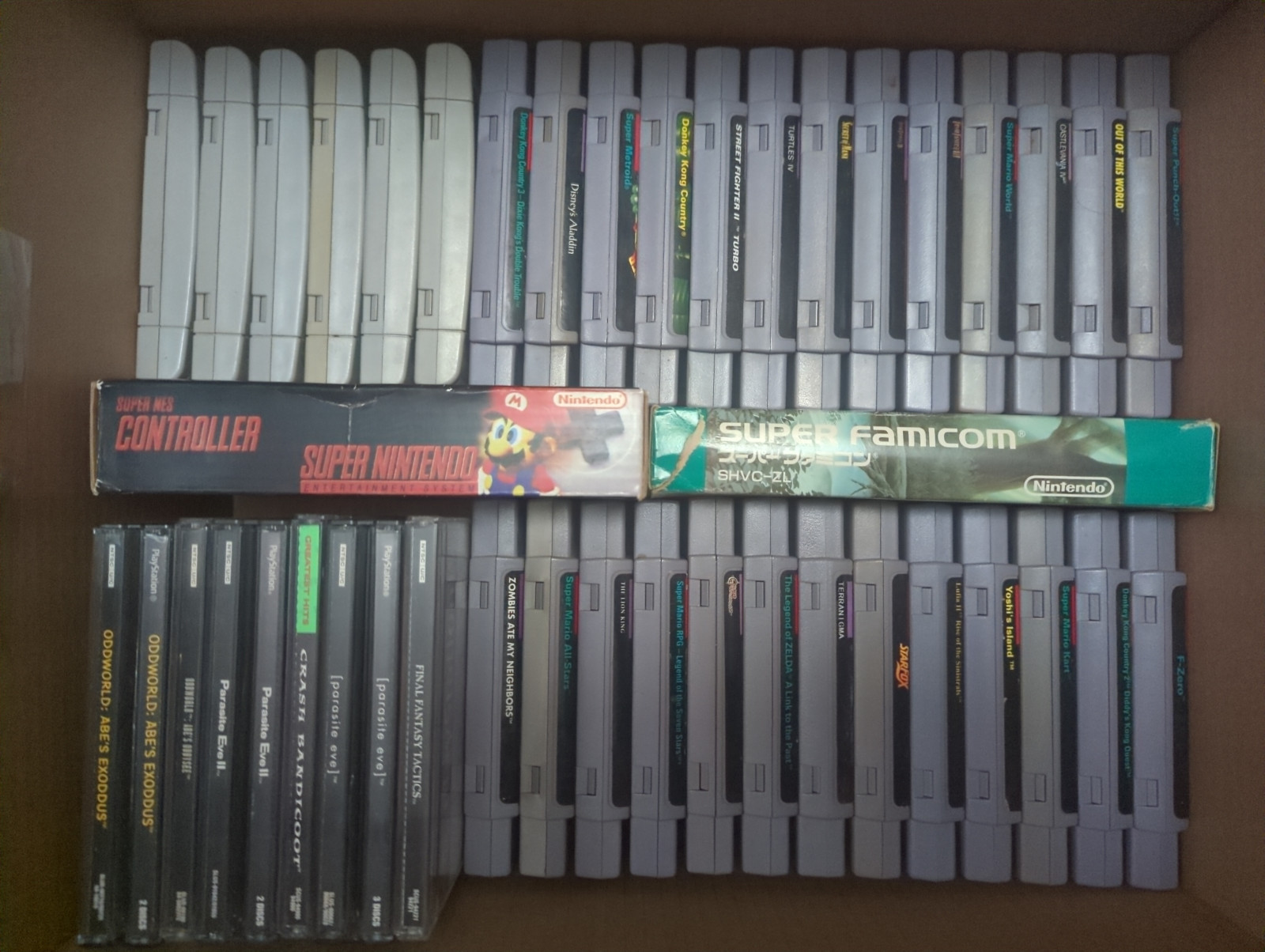 I have here a box of authentic North American SNES, PS1, and Gamecube games that I'm trying to get rid of. I bought most of them on ebay around 2010-2014. The labels on the carts are in good condition. The PS1 and Gamecube games are complete with box and manual.