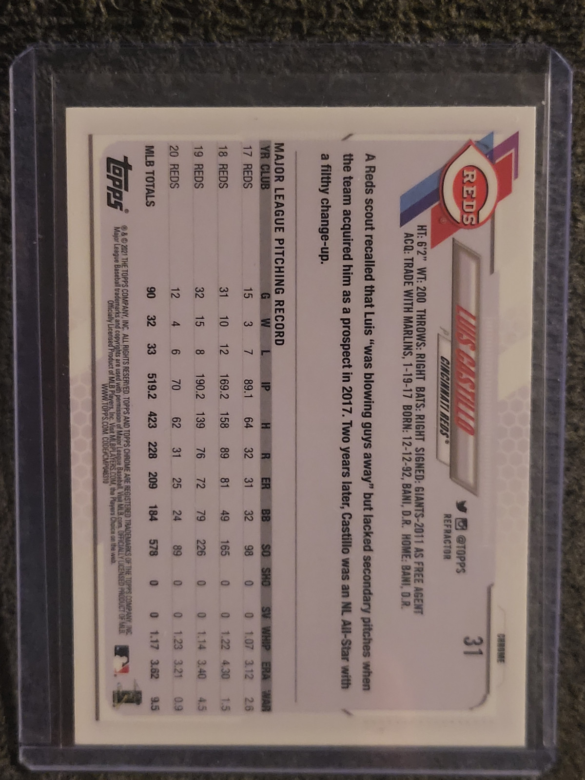 2021 Topps Chrome - Luis Castillo #31- Sepia Refractor- Cincinnati Reds