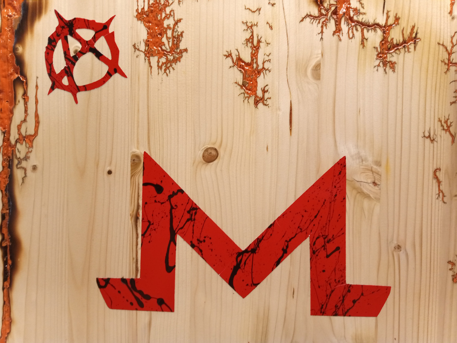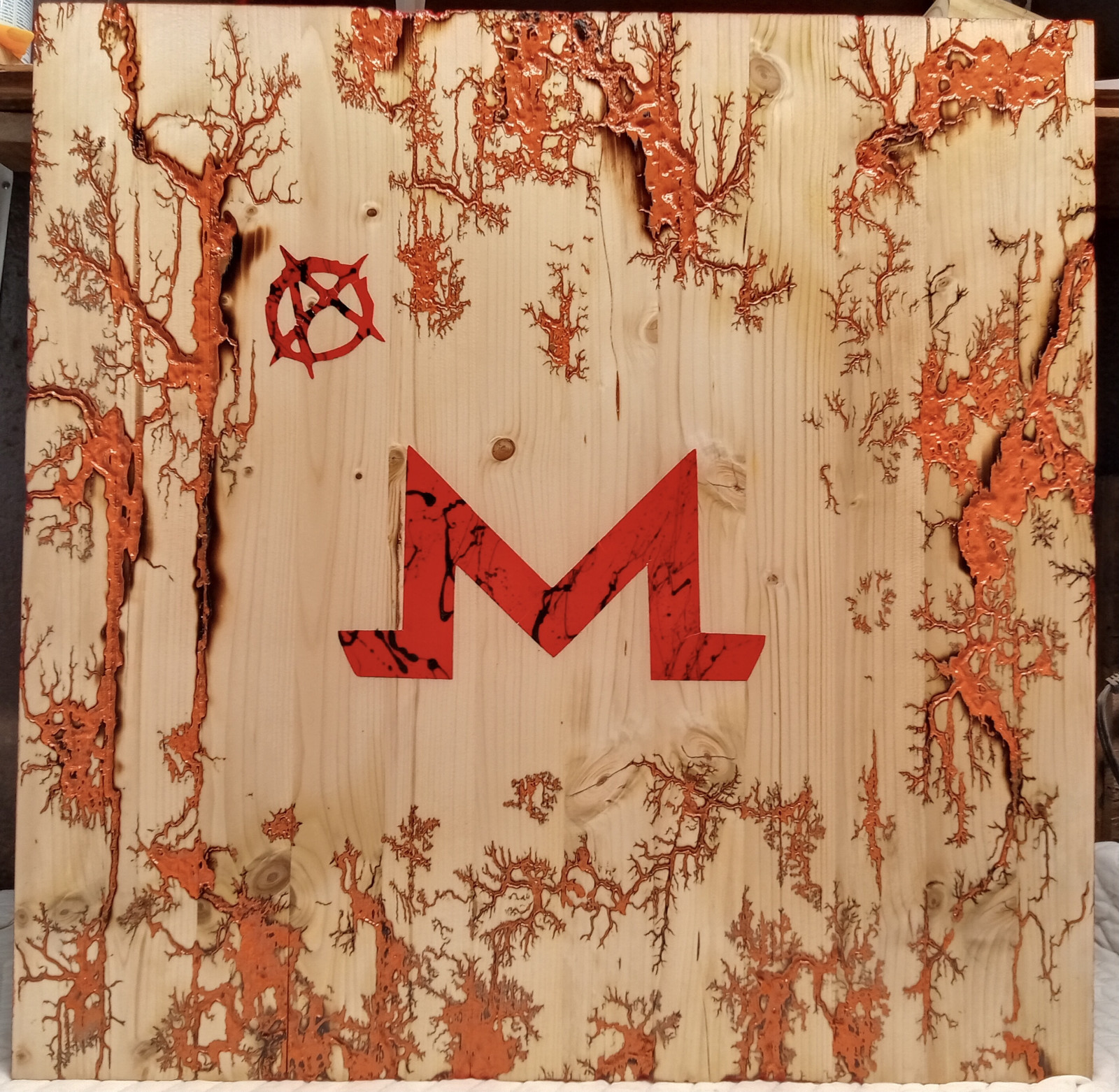 One of kind lichtenberg anarchy Monero wall piece. Lichtenberg figures are made by electrocution & no 2 figures are ever the same. This represents a CPU as one CPU one vote. The lichtenberg figures are painted orange, the Monero M & anarchy symbols are red with a splash of black & a tattered look. The sides of this piece are red & black & the back is black with my QR code, bumpers to protect the wall & a French cleat to hang it with. It comes with the wall bracket, screws & wall anchors. This is sealed for moisture protection & measures 24”x24”. Free shipping worldwide with a 14 day return less a 20% restocking fee. $1500 obo. Follow me on X @BigVfrmTN