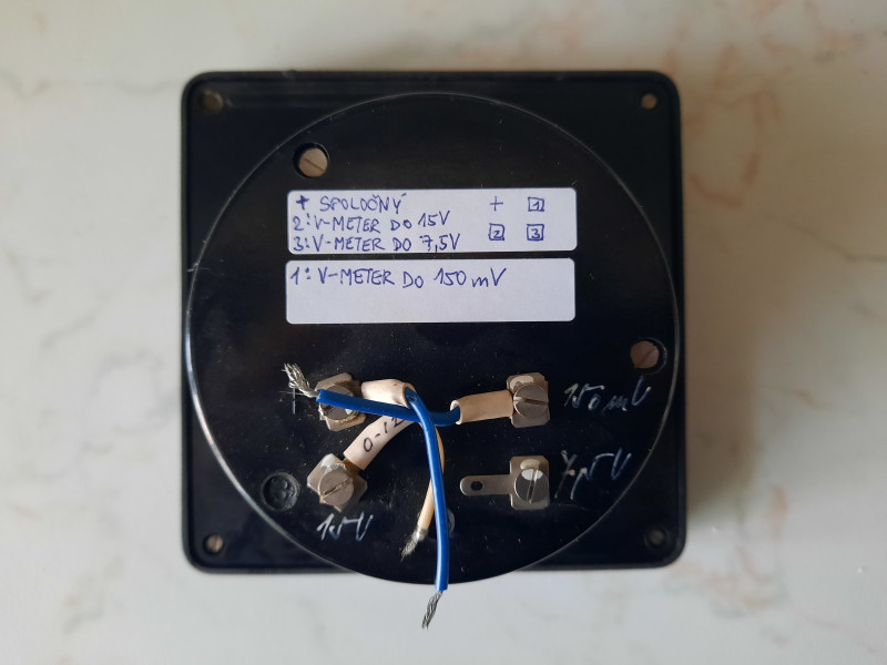 Panel Voltage meter Metra Blansko vintage with 3 ranges: 150 mV, 7.5 V, 15 V