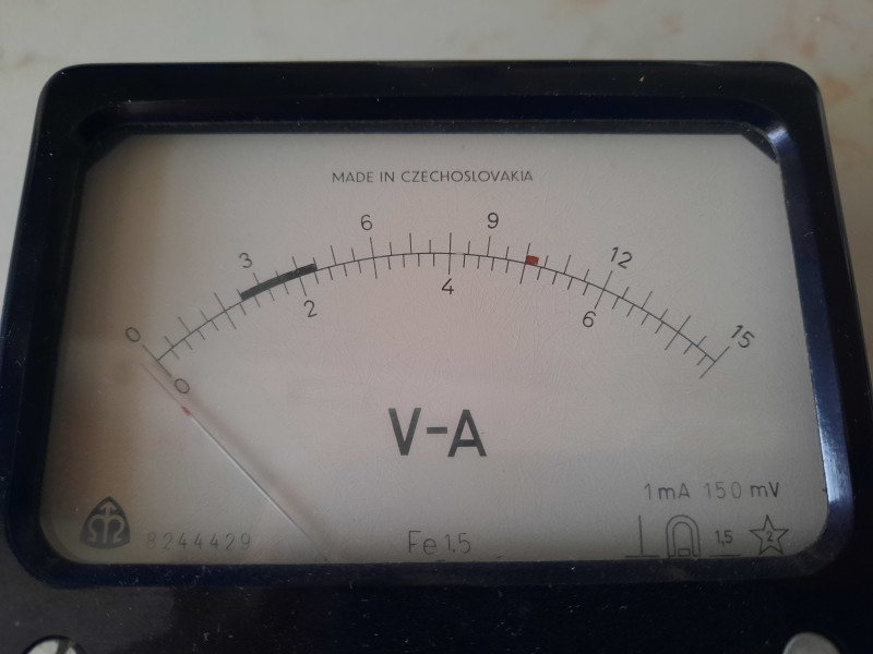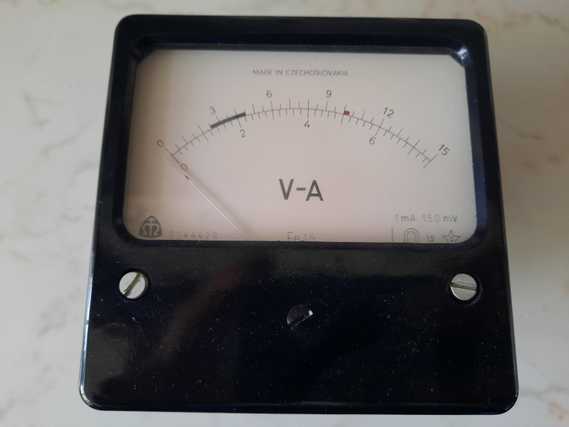 Panel Voltage meter Metra Blansko vintage with 3 ranges: 150 mV, 7.5 V, 15 V, working.