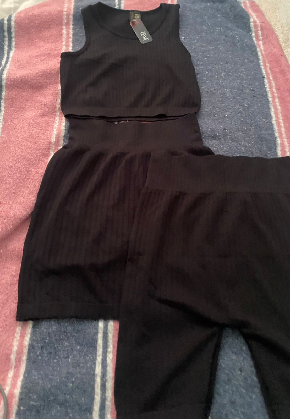 Three pieces in one price, ladies blouse, skirt and pants black color