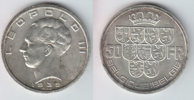 50 FRANCS - LEOPOLD III - SILVER COIN
