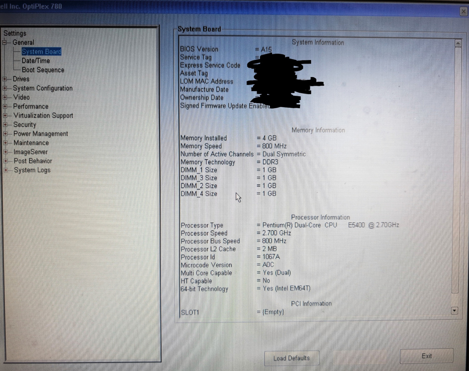 - CPU: (1) Intel Pentium(R) Dual-Core CPU E5400 @ 2.70GHz