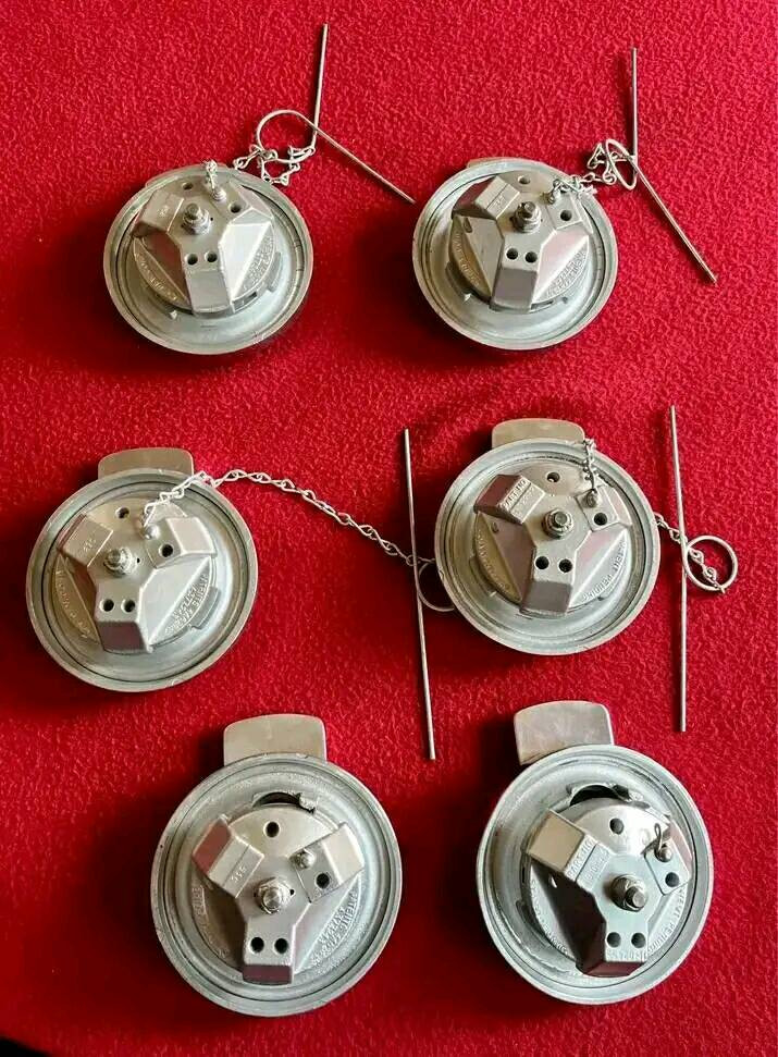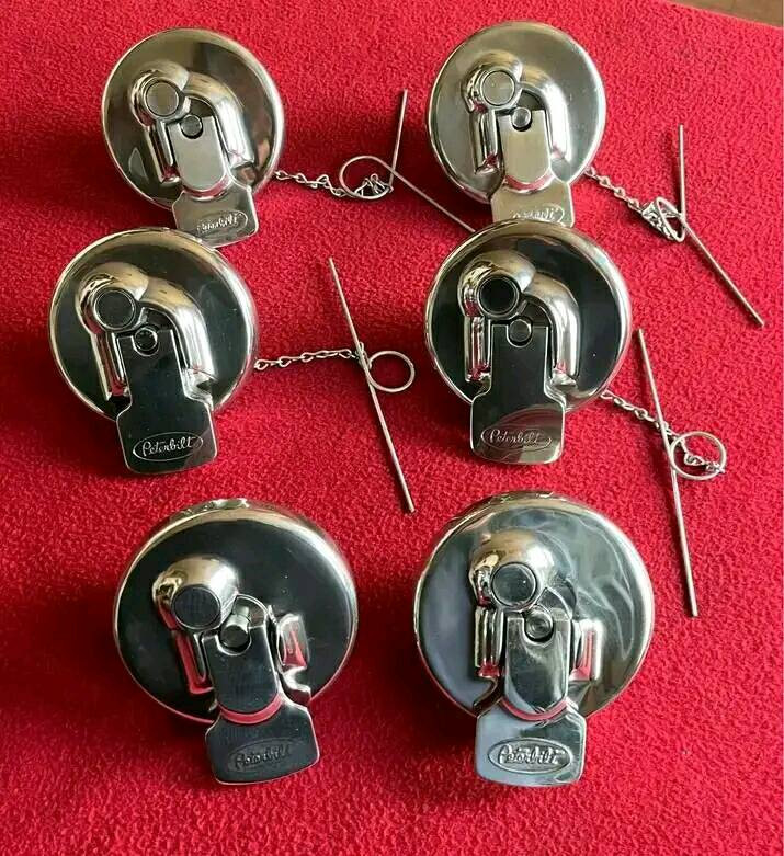 Original vintage all aluminum Peterbilt Fuel Caps. The last pair will not have chains.