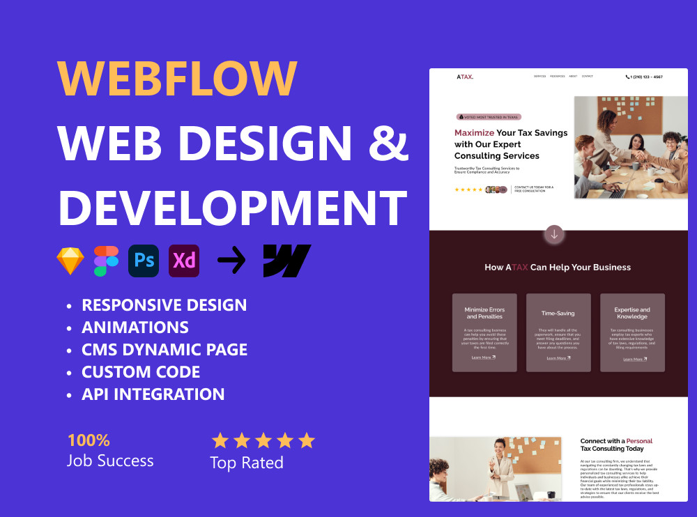 Tags: Webflow Design & Development, API Integration, Figma to Webflow Conversion, Website Redesign, Responsive Design, Web Analytics & SEO, User Experience Design, No-Code Solutions, Page Speed Optimization, Accessibility