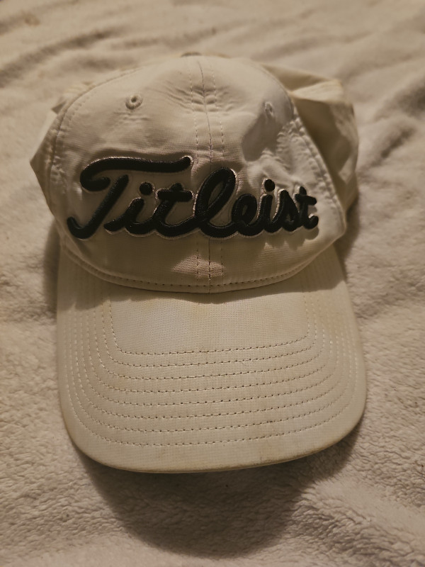 White Titleist hat. Perfect for golf or any activity where you need to keep the sun out of your eyes. Used, but in excellent condition.