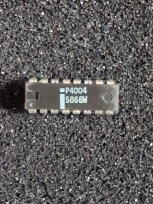 The Intel 4004 was the first commercially available microprocessor. The chip and related chips (4001 ROM, 4002 RAM, 4003 I/O) is popular among collectors.