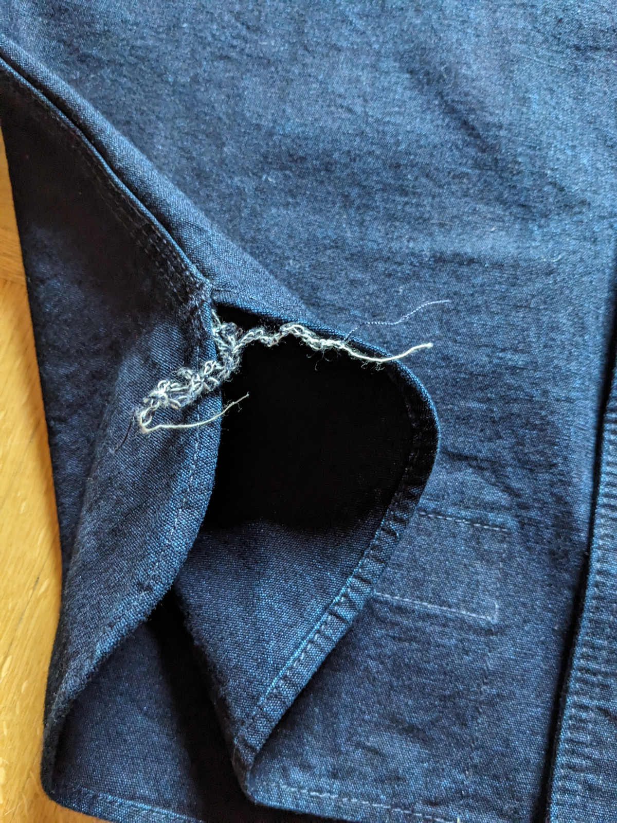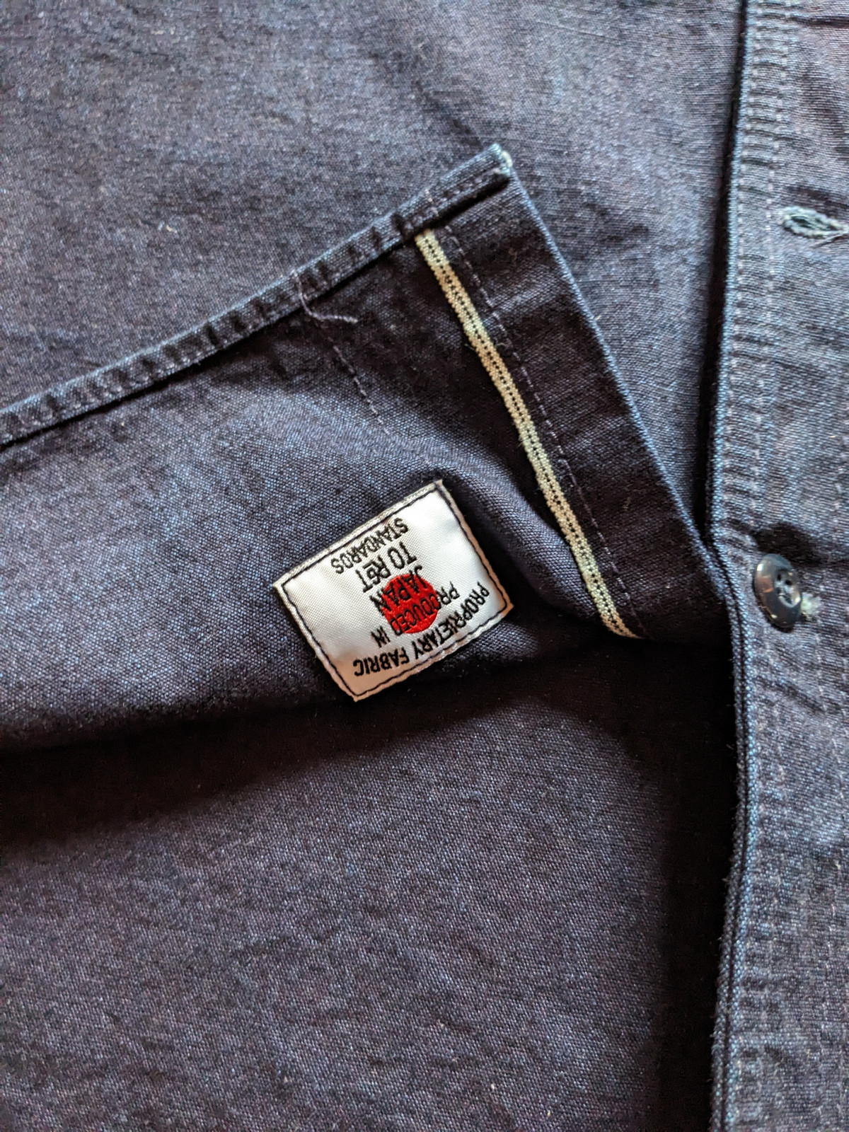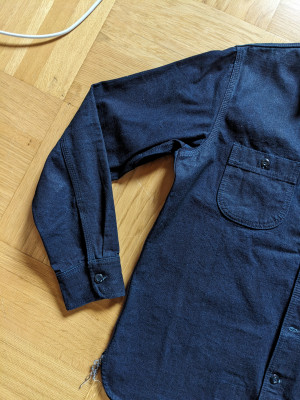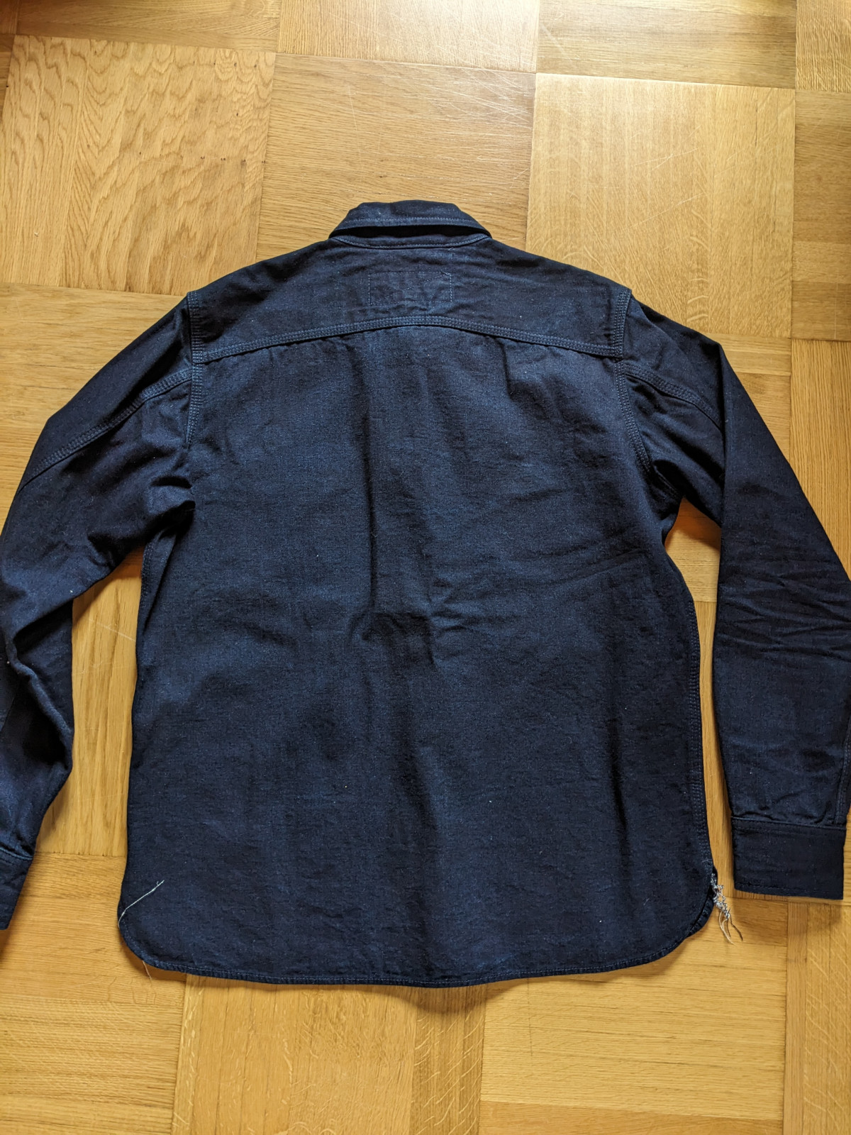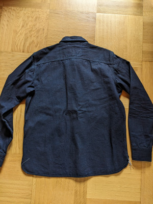Ein oder zweimal getragen, nicht gewaschen (auch nicht per Hand), eigentlich wie neu. Japanese Denim, schwere Qualität.
