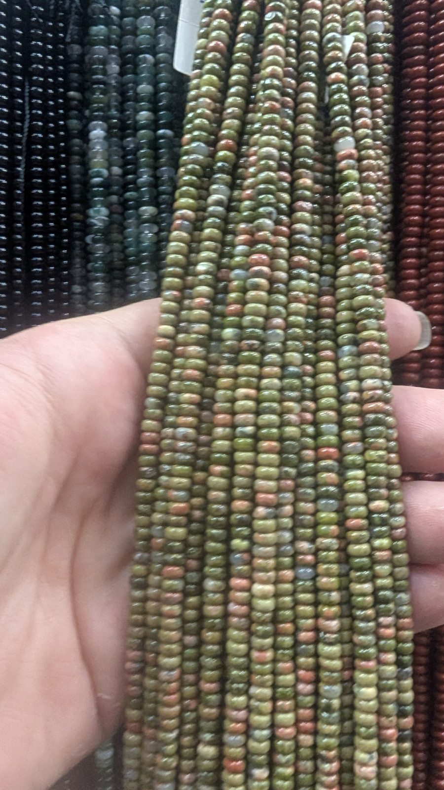 4mm Wholesale Round Unakite Heishi Rondelle Disc Long Strand