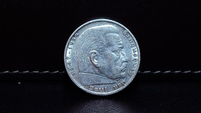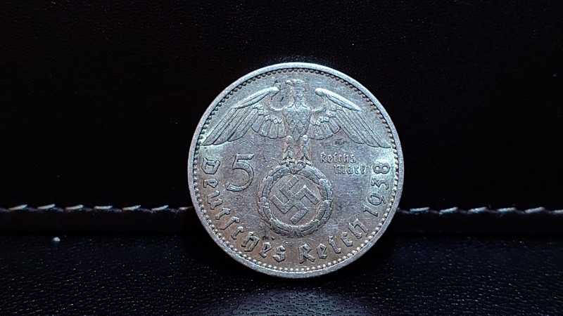 5 Reichs Mark nazi coin with swastika.