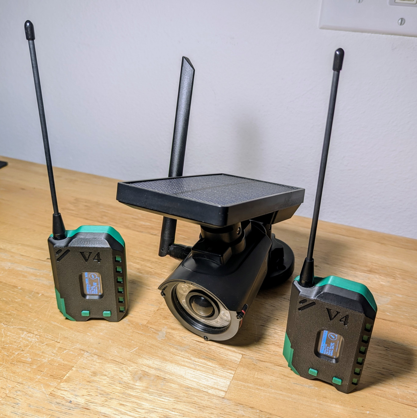 This is a brand-new, complete, pre-assembled set of 3 LoRa radios - (2x portable handhelds + 1x solar-powered "security camera" repeater). Designed for long-range, grid-independent communication. Perfect for emergencies, off-grid living, camping, SHTF scenarios or private encrypted messaging when cell service and the internet fail or you need a stealthy way to communicate.