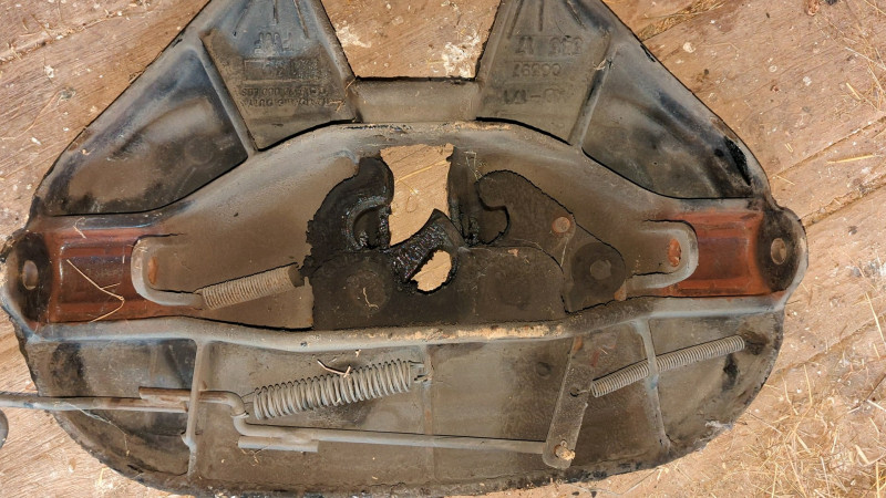 This Holland FW17 fifth Wheel Plate was on a Semi Truck and has 451,779 miles of use. The lock and hook probably need replaced, as the kingpin lock adjustment was on the tightest setting, and the there was some slop in the kingpin when hooked to a trailer.