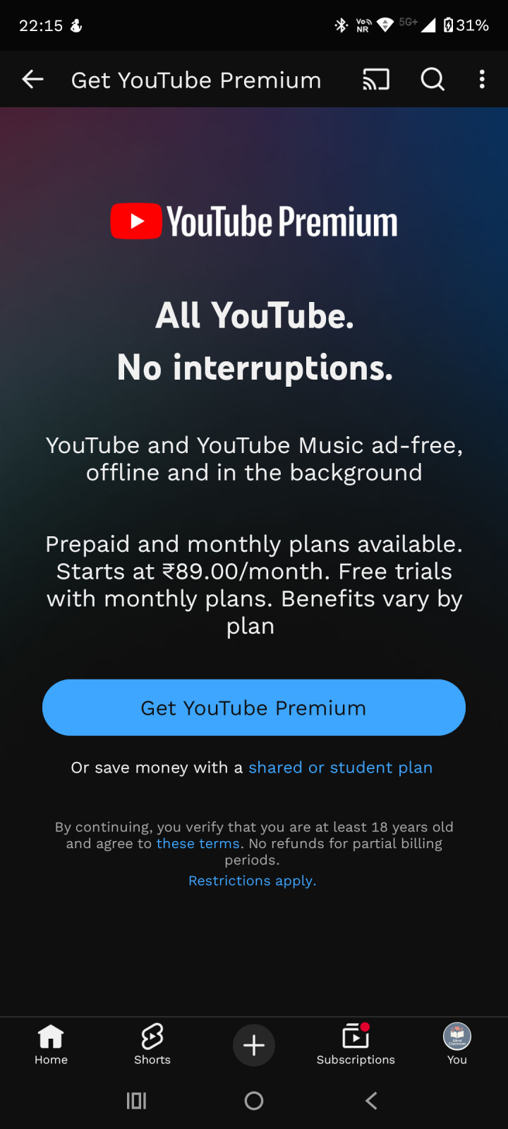 YouTube premium