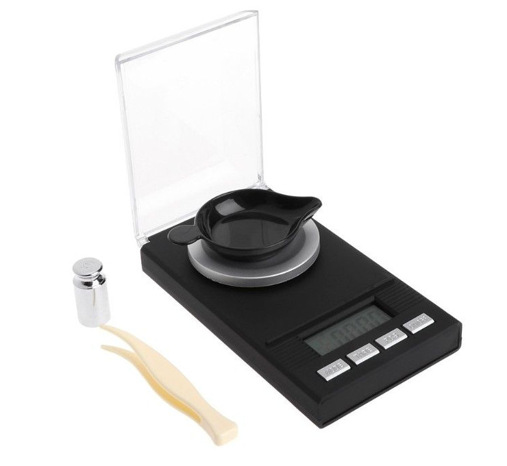 Milligram (mg) balance used for precise weighing. Batteries are included.