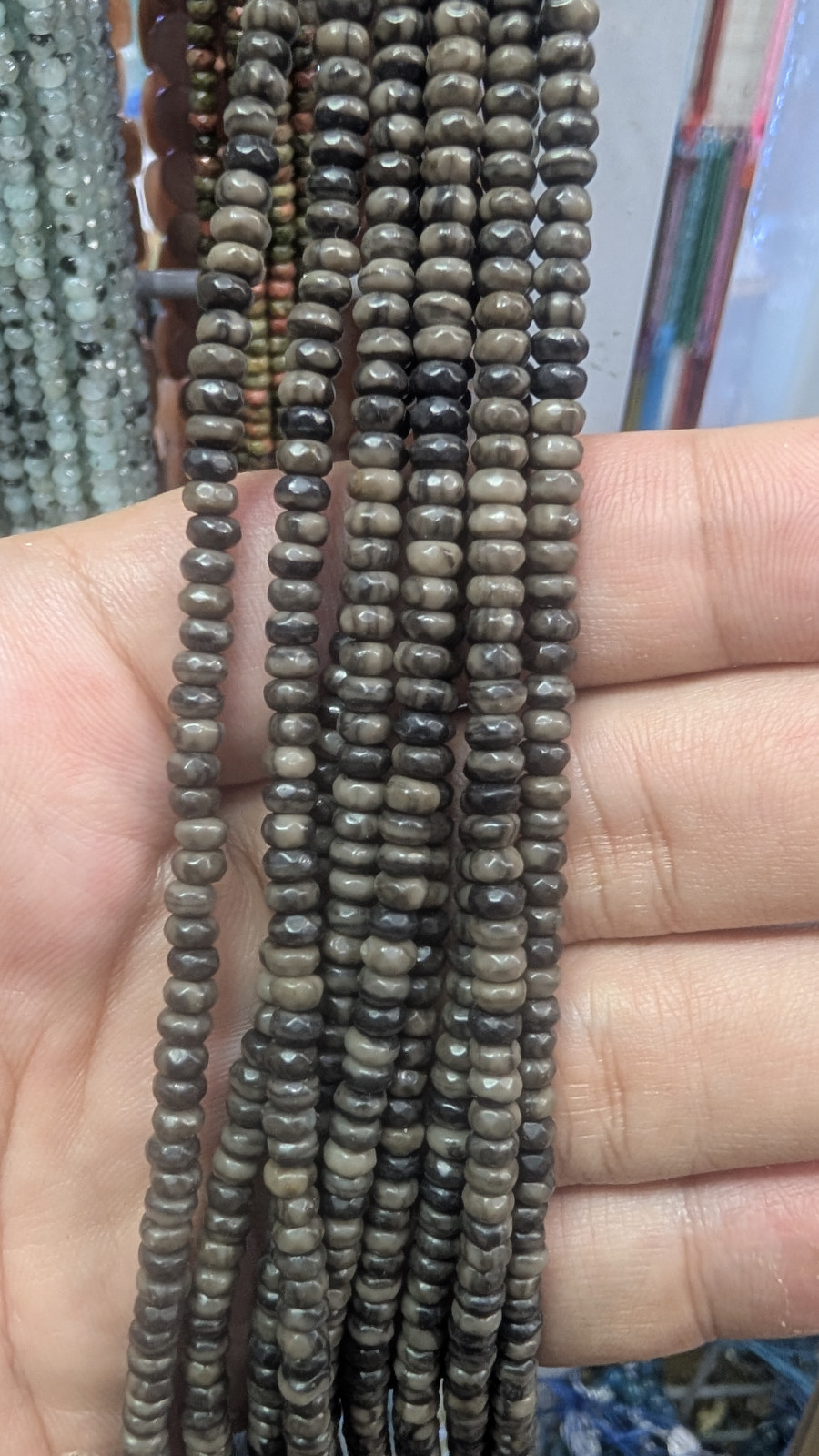 Tags: 4mm, Wholesale, Faceted, Gray, Jasper, Heishi, Rondelle, Disc, Long, Strand