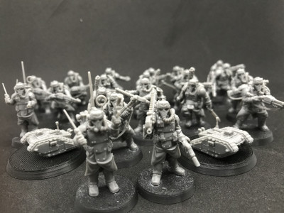 For every 11 models you will find veteran sergeant armed with chain-sword, remote mine with operator, two engineers with flamers and six engineers with shotguns.