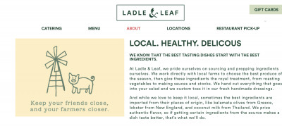 At Ladle & Leaf, we pride ourselves on sourcing and prepping ingredients ourselves. We work directly with local farms to choose the best produce of the season, then give these ingredients the royal treatment, from roasting vegetables to making sauces and stocks. We hand cut everything that goes into your salad and we custom toss it in our fresh handmade dressings.