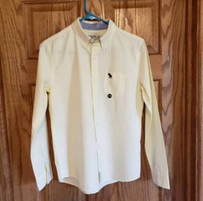Tags: Abercrombie Kids shirt, pale yellow shirt, kids button-down shirt, longsleeve shirt, size 13/14 shirt, casual kids shirt, boys shirt, girls shirt, classic button-down, kids fashion, kids wardrobe staple, versatile kids shirt, premium kids shirt