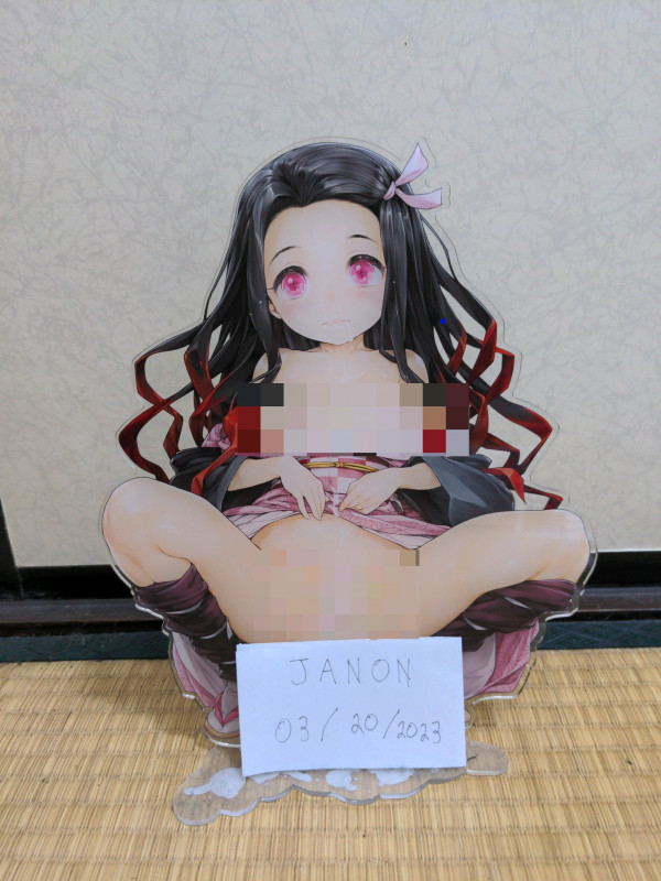 An acrylic figure stand of "Nezuko" from Demon Slayer/Kimetsu no Yaiba, created and released by Ishikei during Tokyo Comic Market 97 in 2019.