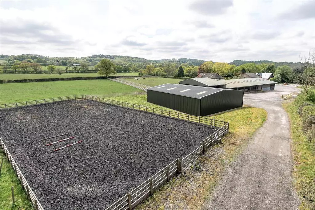 A rare opportunity to acquire impressive equestrian facilities, with circa 12,000 sq ft of modern steel portal frame buildings and a delightful modernised four bedroom farmhouse, with extensive garaging and ancillary accommodation. A separate barn with planning permission for a two bedroom cottage completes this sizeable holding extending to approximately 17.72 acres.