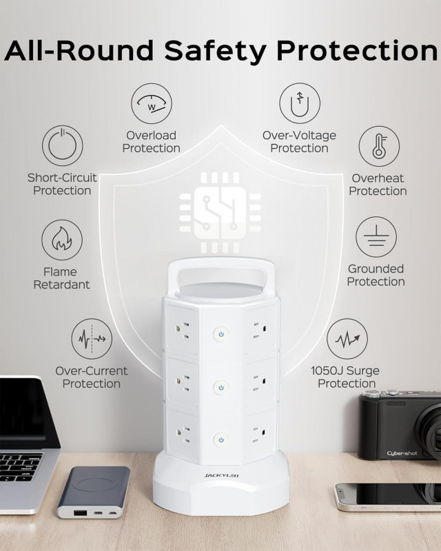 (Out of stock) Power Strip Tower Surge Protector, JACKYLED 12 Outlets 6 USB (2 USB C)