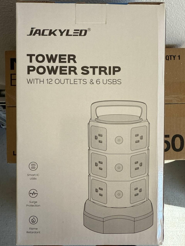 The Power Strip Tower Surge Protector arrived exactly as described, with good packaging to ensure safe shipping, and I received it promptly.