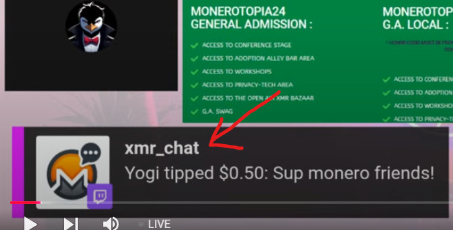 - The easiest way I was thinking of doing it is to just use a screen recorder that can be paused and you just rewatch the livestream on 2x speed until you see an xmrchat tip show up. When it does, you decrease the speed back to 1x and unpause the screen recorder. But make sure you are capturing the moment the speaker is "reading the tip and comment".