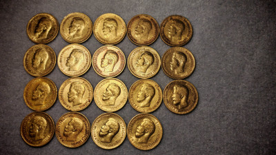 Up to 19 authentic gold coins from the Russian Empire, issued under Tsar Nicholas II. These 10 Rouble pieces are desirable both as historic collector coins and as a way to hold gold outside the fiat system.