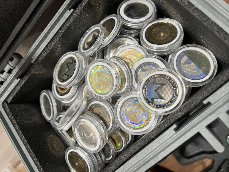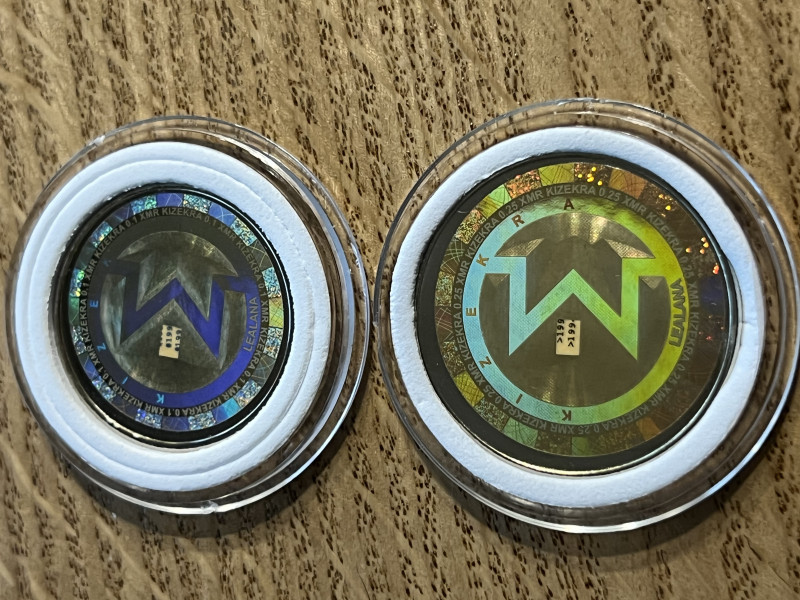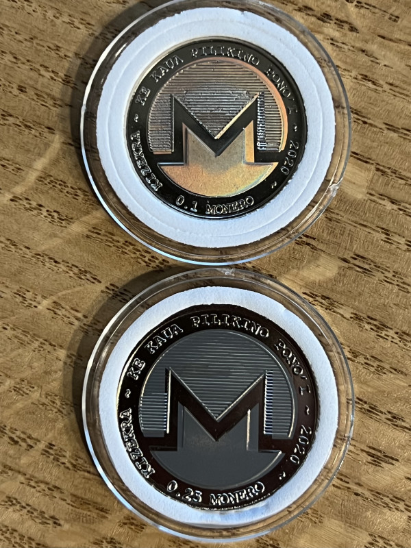 Limited edition 2020 LEALANA 0.10 and 0.25 XMR Monero RAINBOW copper-nickel coins. Dime and Quarter.