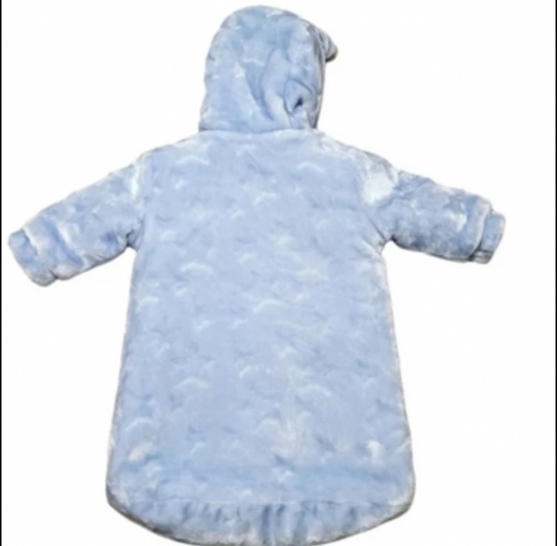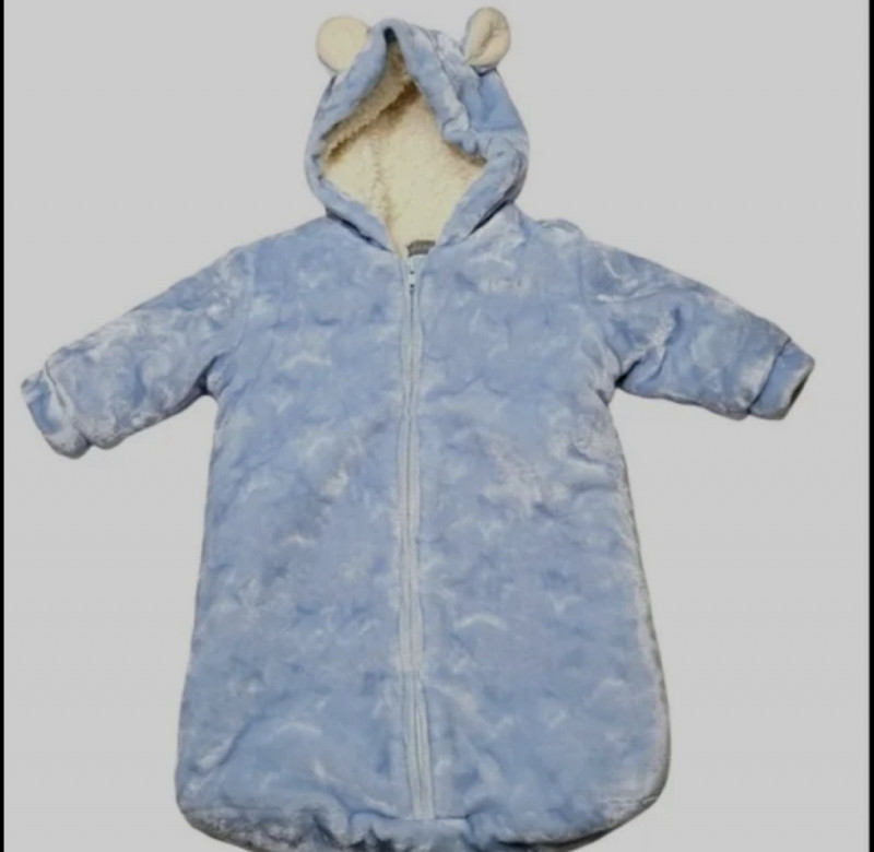 Keep your little one cozy and stylish with this adorable baby blue Petit Monde snowsuit.